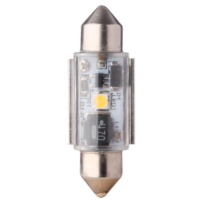 Temperatura: 6500 K Voltaje: 12-24 V Lúmenes: 70-105 LM Tamaño: 13.5 x 38 mm